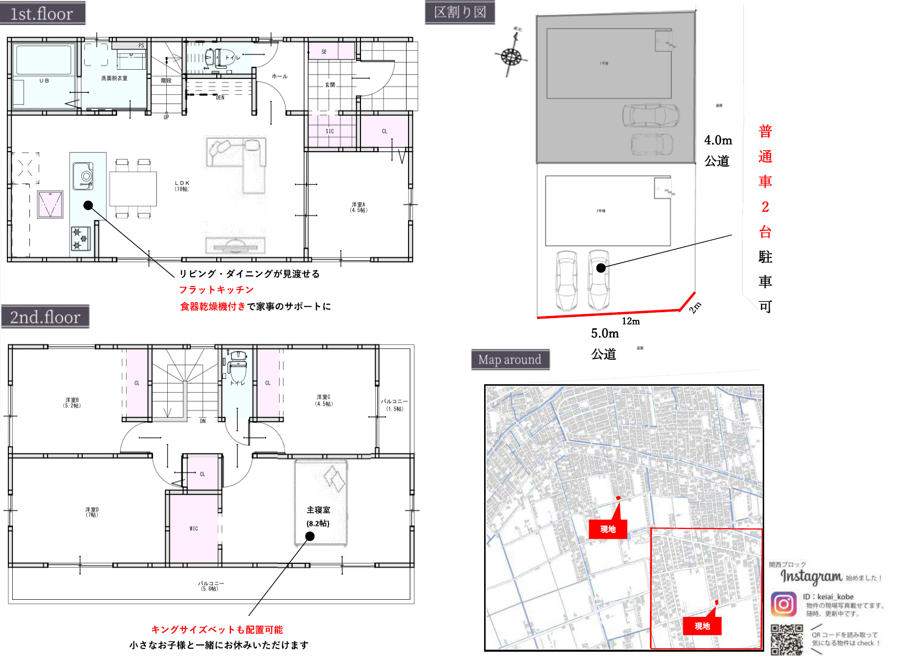 | 私道負担・道路 | なし・東側約4m公道、南側約5m公道 |
