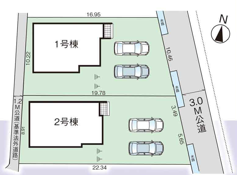 私道負担・道路 東側3.0m公道、西側1.2m公道