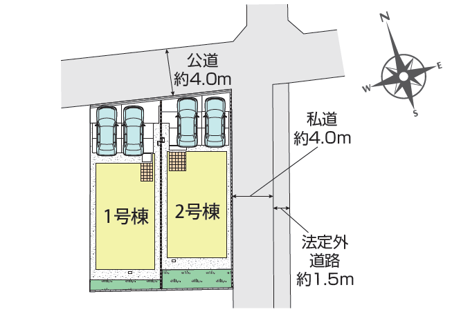 | 私道負担・道路 | 北約4.0m公道、東約4.0m私道(私道持分なし) |