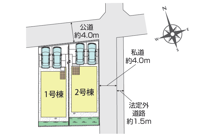 | 私道負担・道路 | 北約4.0m公道、東約4.0m私道(私道持分なし) |