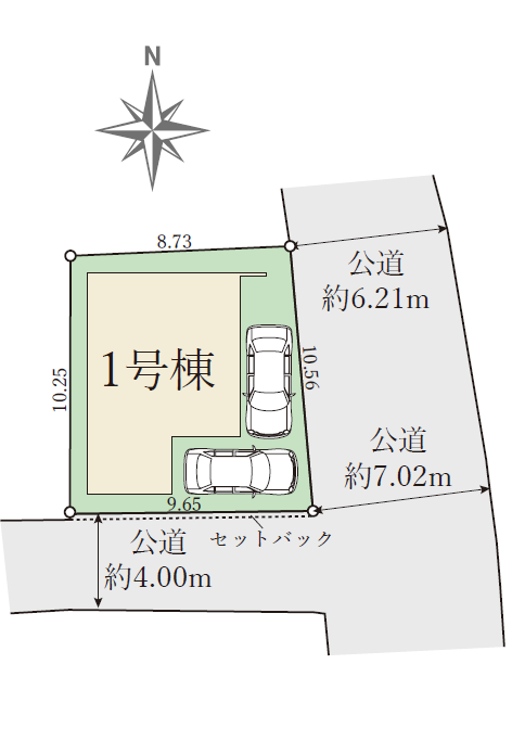私道負担・道路 あり(2.02㎡) 東側約6.2m公道、南側約4.0m公道
