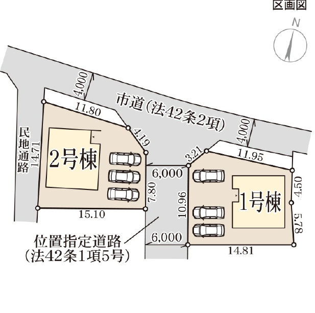 | 私道負担・道路 | 北側4m公道、中央側6m位置指定道路 |