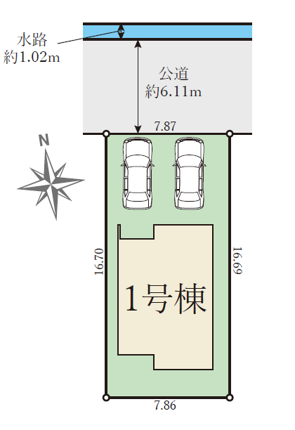 | 私道負担・道路 | 私道負担なし、北側約6.1m公道 |