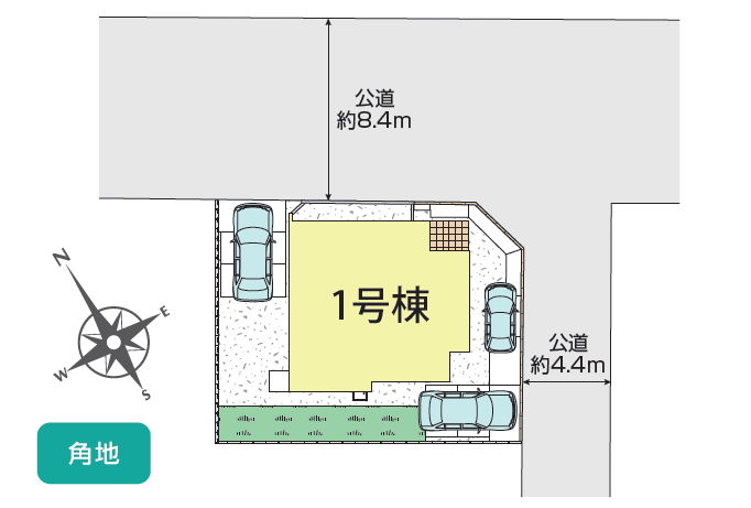 私道負担・道路 北東約8.4m公道、南東約4.4m公道
